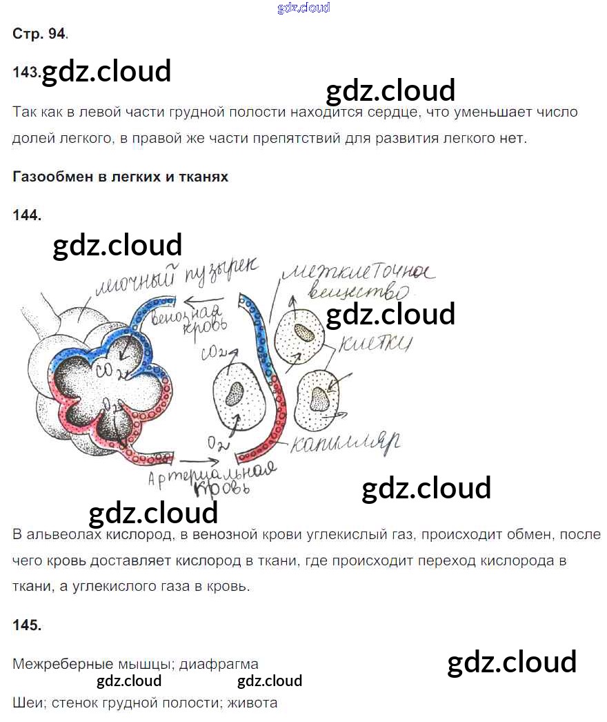 Ответ на задание 94 Рабочая тетрадь Биология за 8 (восьмой) класс Сонин, Агафонова УМК 2017 ФГОС онлайн и без номера телефона.