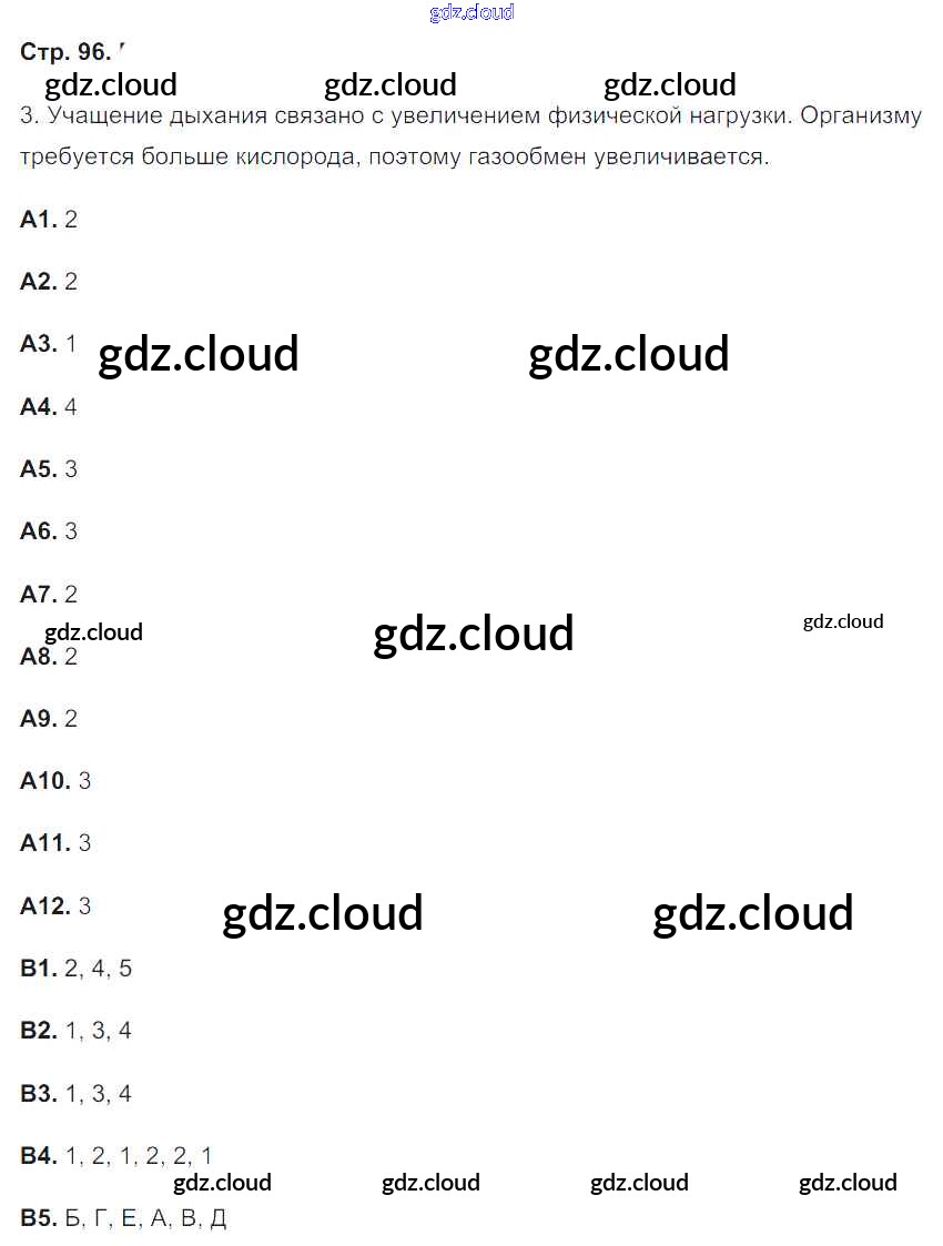 Ответ на задание 96 Рабочая тетрадь Биология за 8 (восьмой) класс Сонин, Агафонова УМК 2017 ФГОС онлайн и без номера телефона.