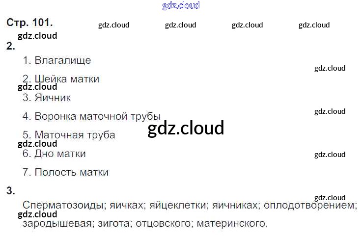 Ответ на задание 101 Рабочая тетрадь Биология за 8 (восьмой) класс Жемчугова, Романова Инновационная школа 2017 ФГОС онлайн и без номера телефона.