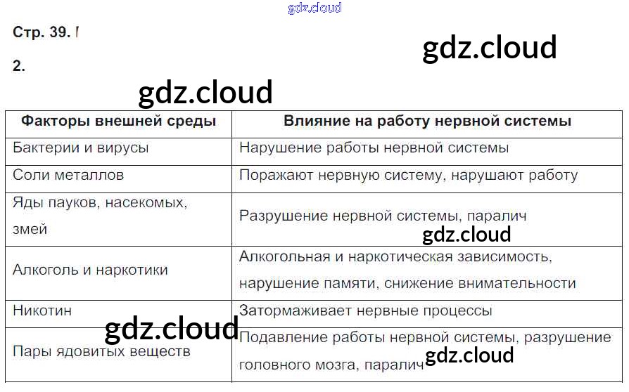 Ответ на задание 39 Рабочая тетрадь Биология за 8 (восьмой) класс Жемчугова, Романова Инновационная школа 2017 ФГОС онлайн и без номера телефона.