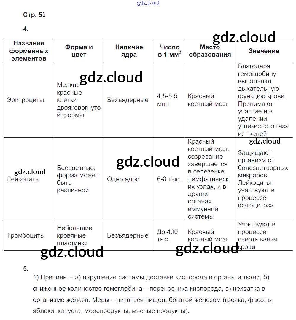 Ответ на задание 53 Рабочая тетрадь Биология за 8 (восьмой) класс Жемчугова, Романова Инновационная школа 2017 ФГОС онлайн и без номера телефона.