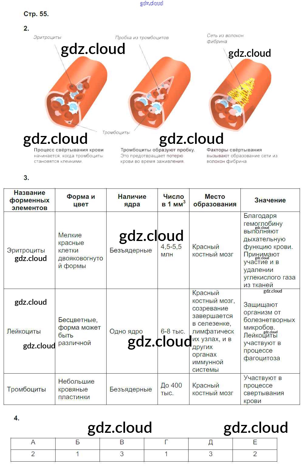 Ответ на задание 55 Рабочая тетрадь Биология за 8 (восьмой) класс Жемчугова, Романова Инновационная школа 2017 ФГОС онлайн и без номера телефона.