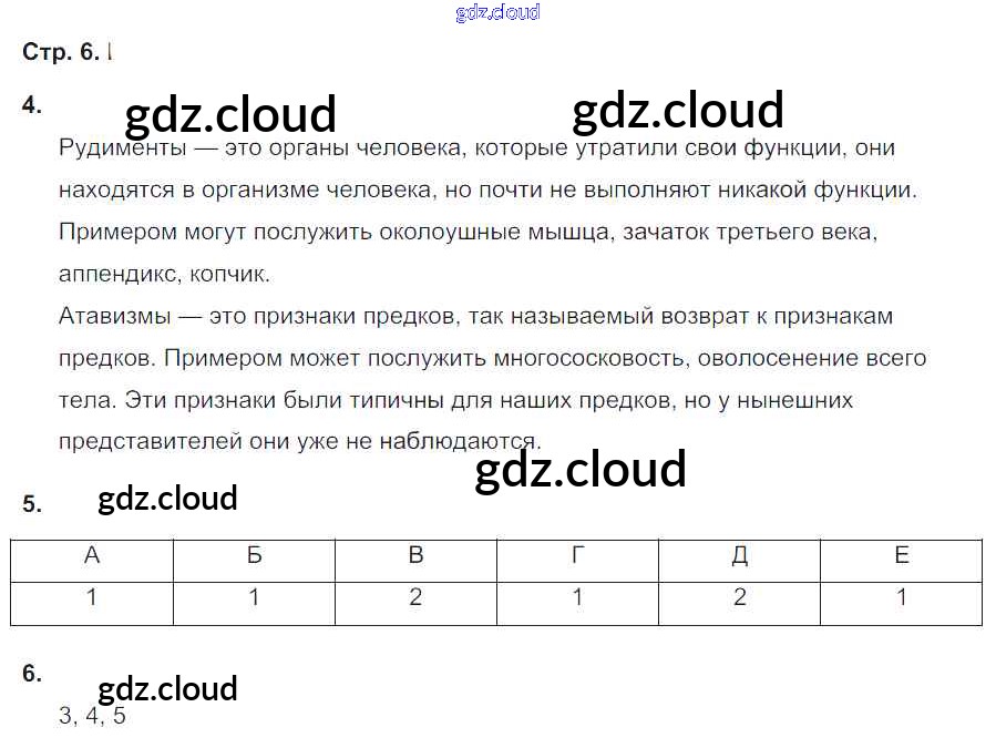 Ответ на задание 6 Рабочая тетрадь Биология за 8 (восьмой) класс Жемчугова, Романова Инновационная школа 2017 ФГОС онлайн и без номера телефона.