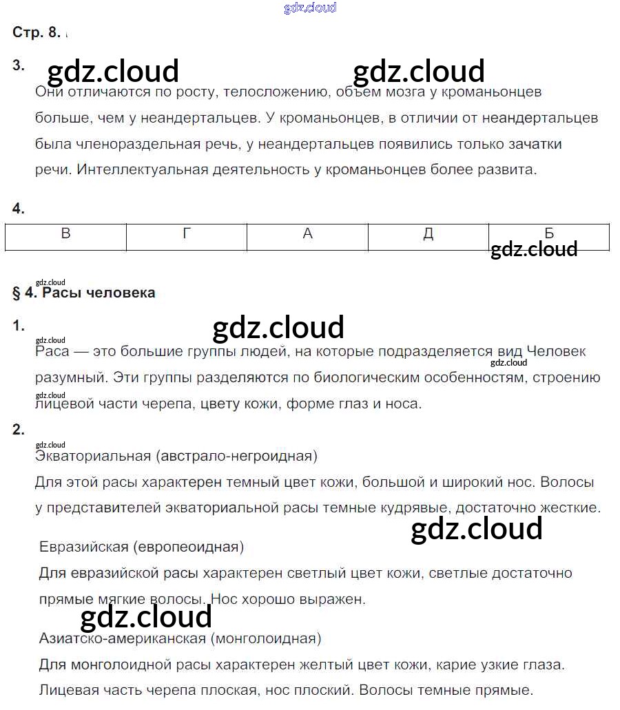 Ответ на задание 8 Рабочая тетрадь Биология за 8 (восьмой) класс Жемчугова, Романова Инновационная школа 2017 ФГОС онлайн и без номера телефона.
