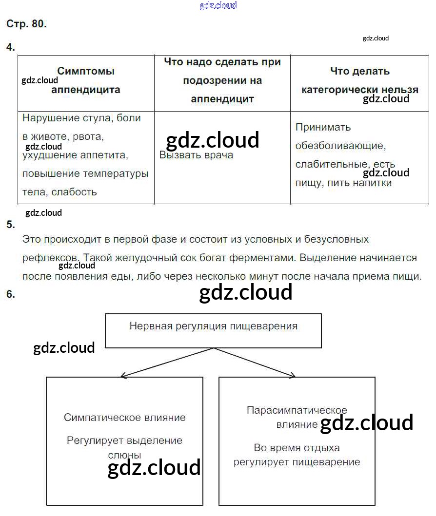 Ответ на задание 80 Рабочая тетрадь Биология за 8 (восьмой) класс Жемчугова, Романова Инновационная школа 2017 ФГОС онлайн и без номера телефона.