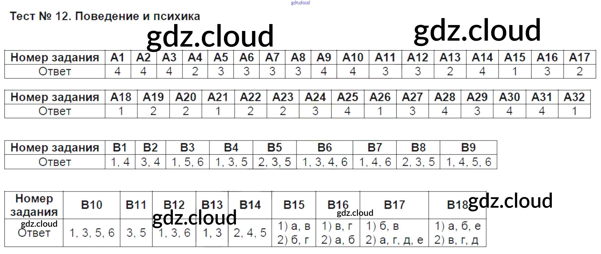 Ответ на задание 12 Тестовые задания Биология за 8 (восьмой) класс Солодова 2019 ФГОС онлайн и без номера телефона.
