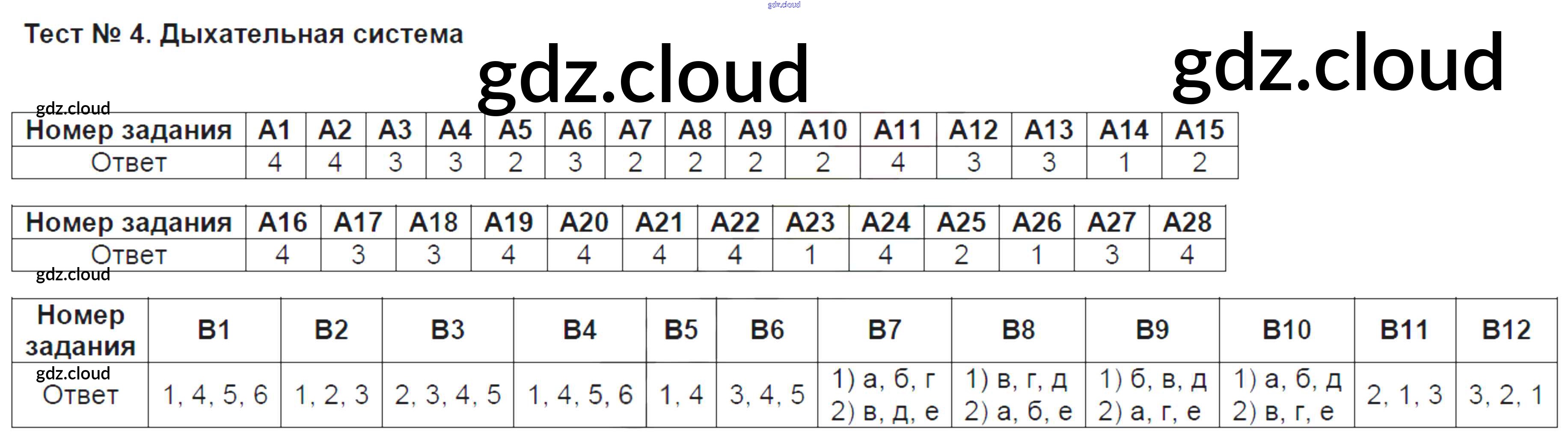 Ответ на задание 4 Тестовые задания Биология за 8 (восьмой) класс Солодова 2019 ФГОС онлайн и без номера телефона.