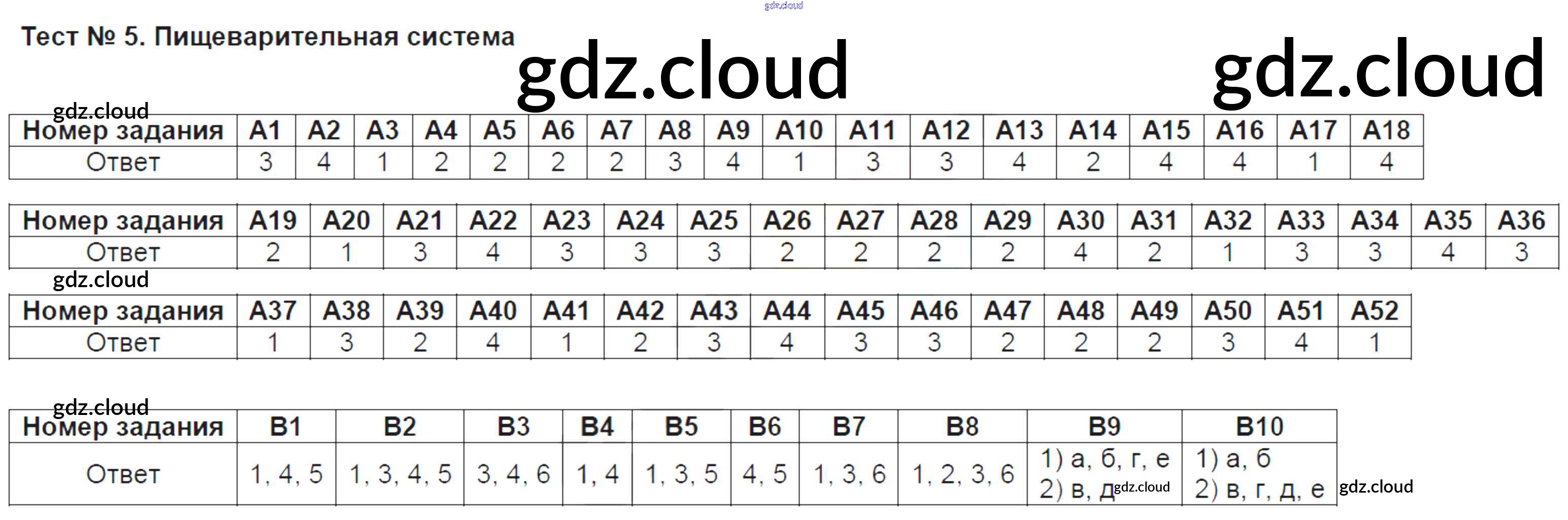 Ответ на задание 5 Тестовые задания Биология за 8 (восьмой) класс Солодова 2019 ФГОС онлайн и без номера телефона.