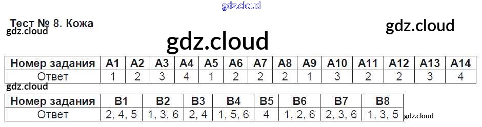 Ответы к Тестам по Биологии 8 класс Тестовые задания Солодова Вентана-граф