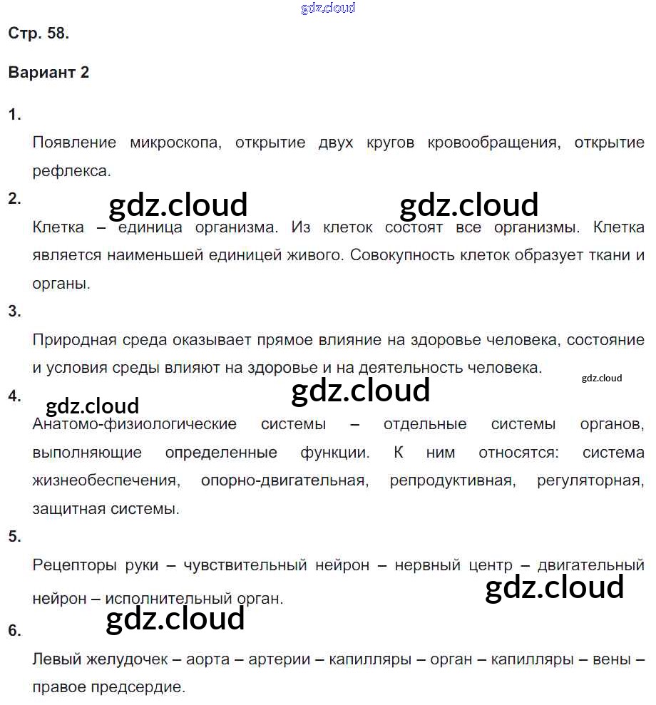 Ответ на задание 58 Тетрадь-экзаменатор Биология за 8 (восьмой) класс Сухорукова, Кучменко, Ефремова Сферы 2016 ФГОС онлайн и без номера телефона.