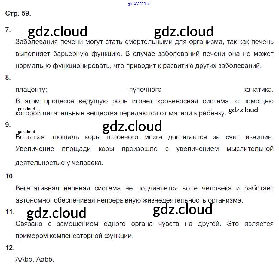Ответ на задание 59 Тетрадь-экзаменатор Биология за 8 (восьмой) класс Сухорукова, Кучменко, Ефремова Сферы 2016 ФГОС онлайн и без номера телефона.