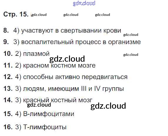 Ответ на задание 15 Тетрадь-тренажер Биология за 8 (восьмой) класс Сухорукова, Кучменко, Дмитриева Сферы 2017 ФГОС онлайн и без номера телефона.