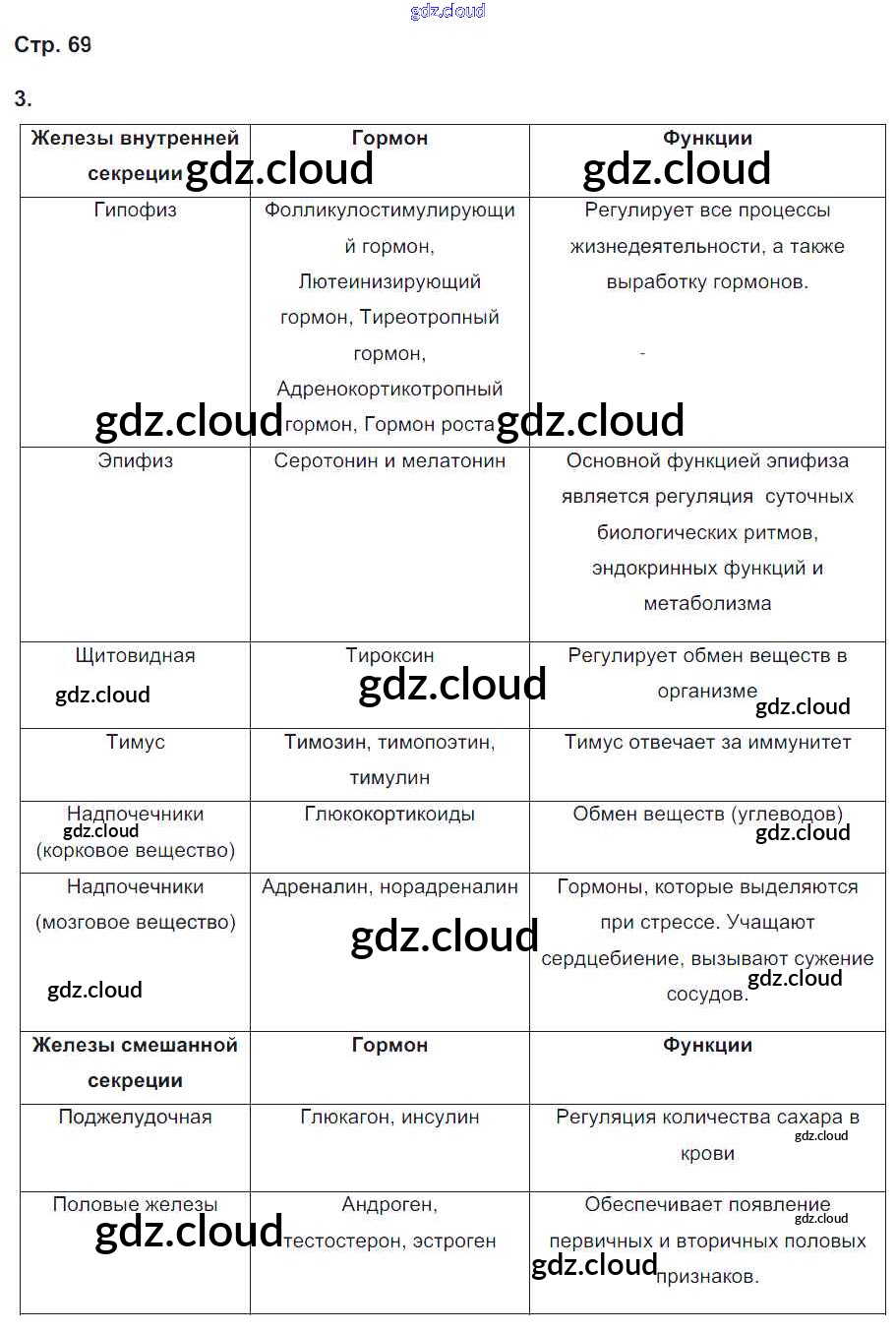 Ответ на задание 69 Тетрадь-тренажер Биология за 8 (восьмой) класс Сухорукова, Кучменко, Дмитриева Сферы 2017 ФГОС онлайн и без номера телефона.