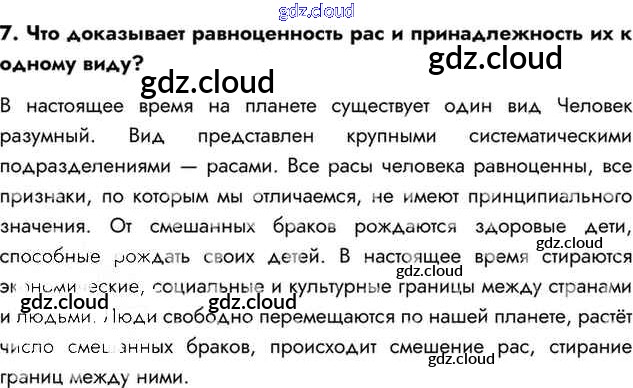 Ответ на задание 7 Учебник Биология за 8 (восьмой) класс Драгомилов, Маш Алгоритм успеха 2022 ФГОС онлайн и без номера телефона.
