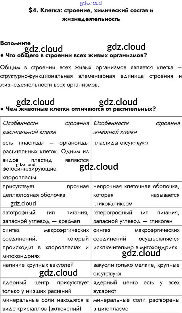§4 Ответы к главе 1 по Биологии 8 класс Учебник Драгомилов Алгоритм успеха Просвещение