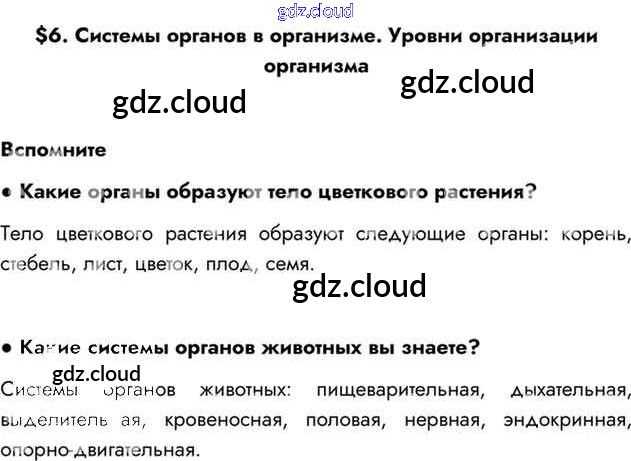 §6 Ответы к главе 1 по Биологии 8 класс Учебник Драгомилов Алгоритм успеха Просвещение