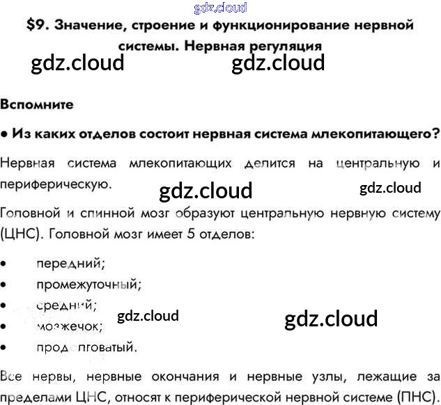 §9 Ответы к главе 2 по Биологии 8 класс Учебник Драгомилов Алгоритм успеха Просвещение