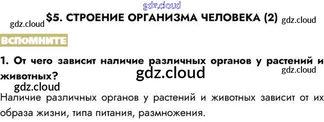 Вспомните Ответы к §5 по Биологии 8 класс Учебник Пасечник Линия жизни Просвещение