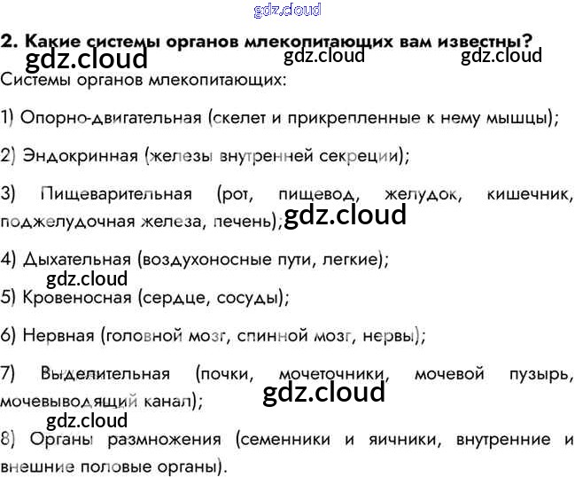 Ответ на задание 2 Учебник Биология за 8 (восьмой) класс Пасечник, Каменский, Швецов Линия жизни 2016 ФГОС онлайн и без номера телефона.