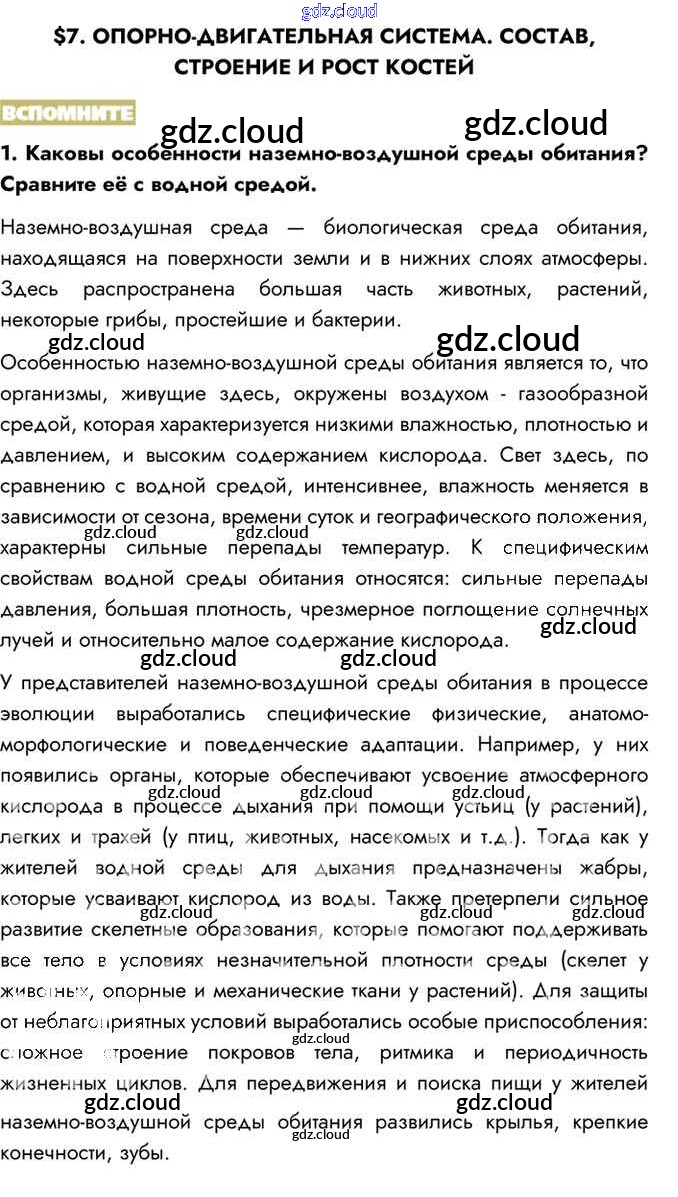 Вспомните Ответы к §7 по Биологии 8 класс Учебник Пасечник Линия жизни Просвещение