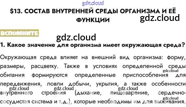 Вспомните Ответы к §13 по Биологии 8 класс Учебник Пасечник Линия жизни Просвещение