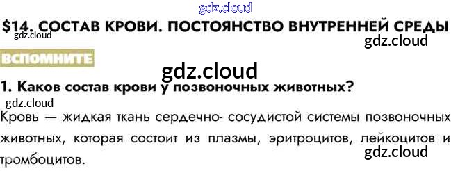 Вспомните Ответы к §14 по Биологии 8 класс Учебник Пасечник Линия жизни Просвещение