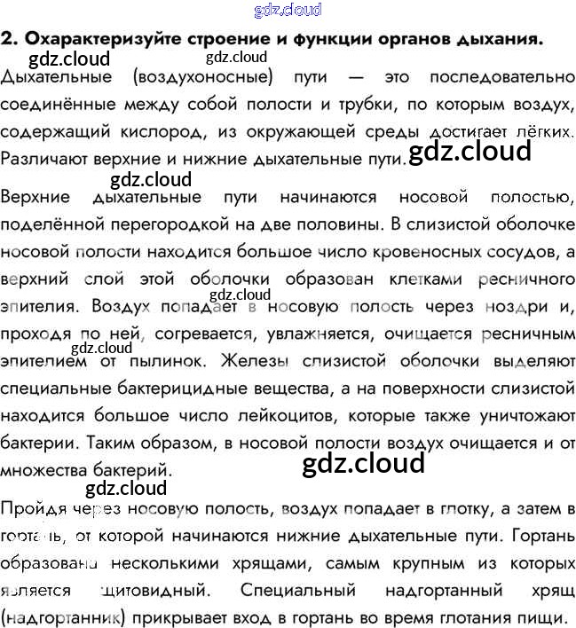 Ответ на задание 2 Учебник Биология за 8 (восьмой) класс Пасечник, Каменский, Швецов Линия жизни 2016 ФГОС онлайн и без номера телефона.