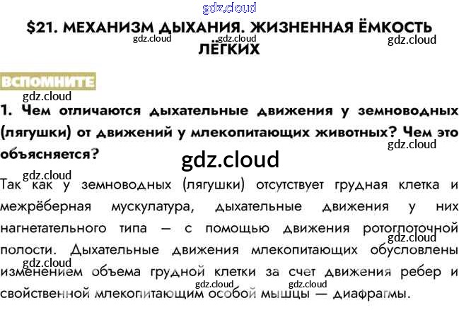 Вспомните Ответы к §21 по Биологии 8 класс Учебник Пасечник Линия жизни Просвещение