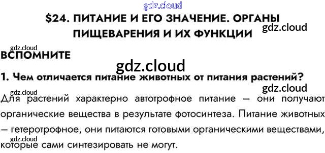 Вспомните Ответы к §24 по Биологии 8 класс Учебник Пасечник Линия жизни Просвещение