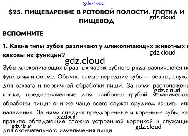 Вспомните Ответы к §25 по Биологии 8 класс Учебник Пасечник Линия жизни Просвещение