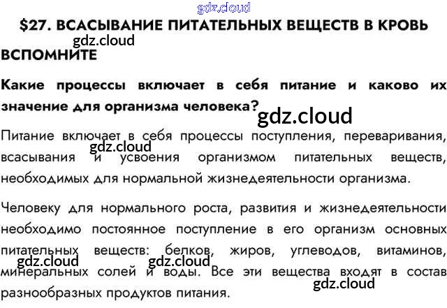Вспомните Ответы к §27 по Биологии 8 класс Учебник Пасечник Линия жизни Просвещение