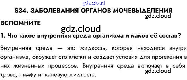 Вспомните Ответы к §34 по Биологии 8 класс Учебник Пасечник Линия жизни Просвещение