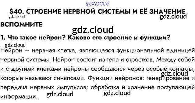 Вспомните Ответы к §40 по Биологии 8 класс Учебник Пасечник Линия жизни Просвещение