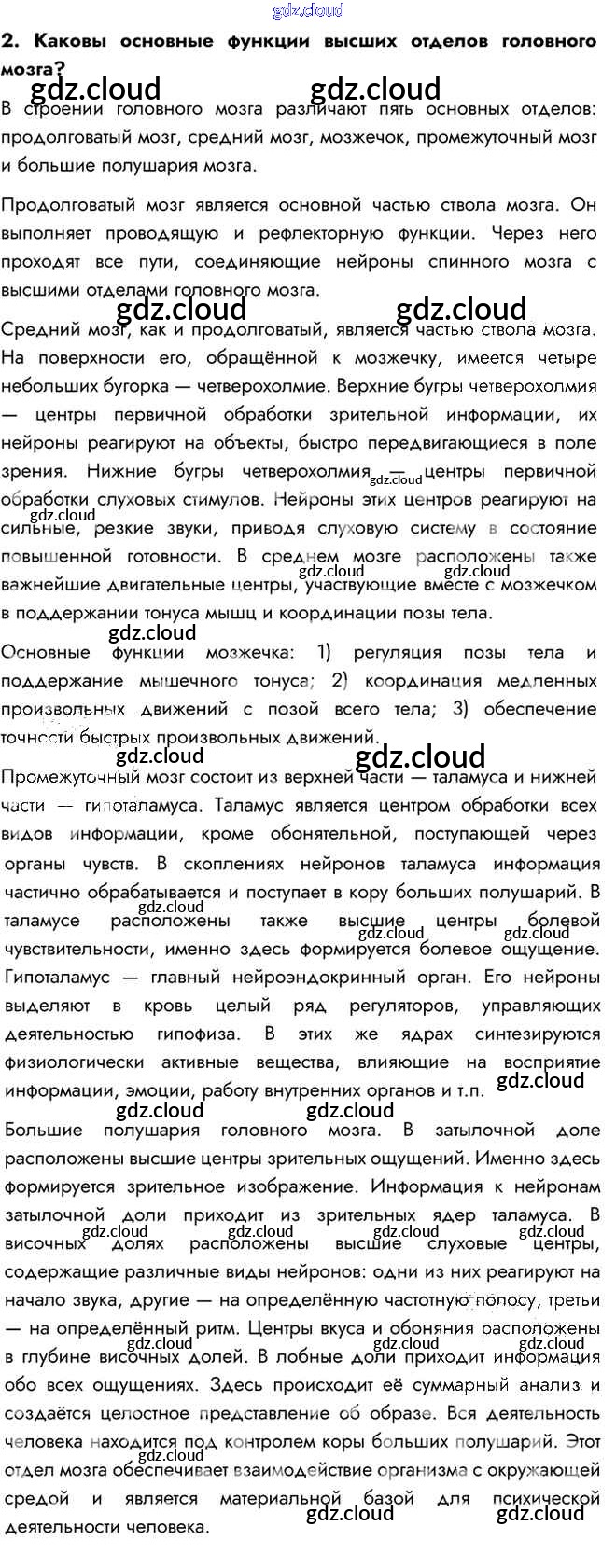 Ответ на задание 2 Учебник Биология за 8 (восьмой) класс Пасечник, Каменский, Швецов Линия жизни 2016 ФГОС онлайн и без номера телефона.