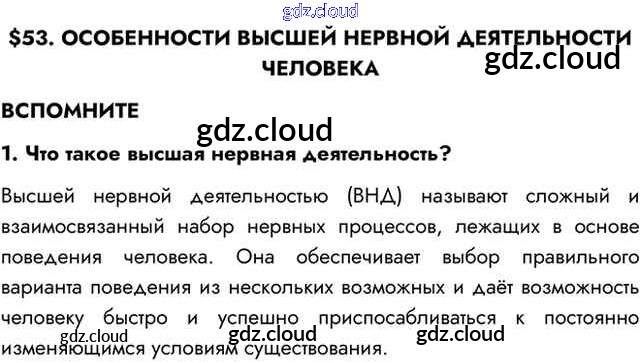 Вспомните Ответы к §53 по Биологии 8 класс Учебник Пасечник Линия жизни Просвещение
