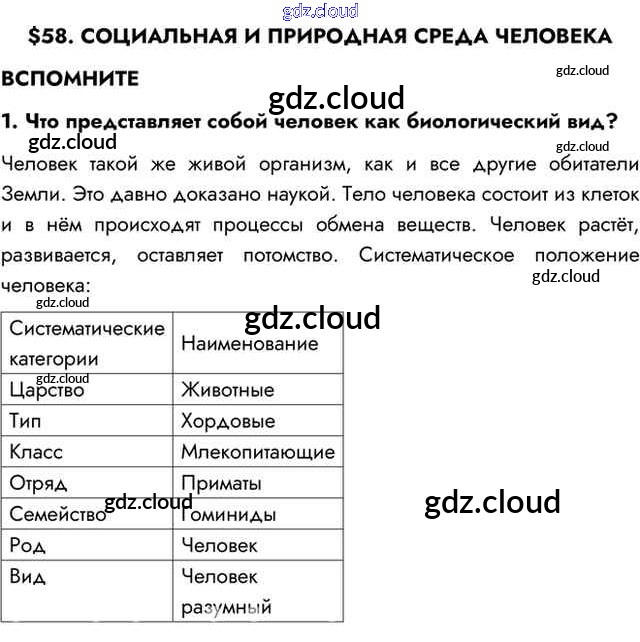 Ответ на задание 1 Учебник Биология за 8 (восьмой) класс Пасечник, Каменский, Швецов Линия жизни 2016 ФГОС онлайн и без номера телефона.