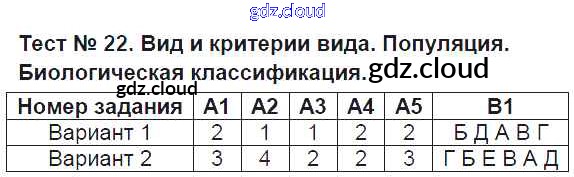 Ответ на задание Тест №22. Вид и критерии вида. Популяция. Биологическая классификация Контрольно-измерительные материалы (КИМ) Биология за 9 (девятый) класс Богданов 2017