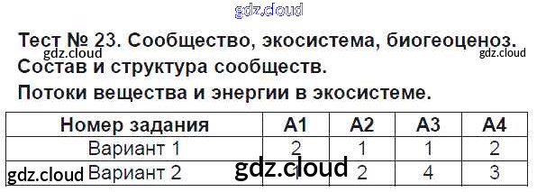 Ответ на задание Тест №23. Сообщество, экосистема, биогеоценоз Контрольно-измерительные материалы (КИМ) Биология за 9 (девятый) класс Богданов 2017