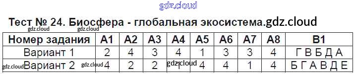Ответ на задание Тест №24. Биосфера - глобальная экосистема Контрольно-измерительные материалы (КИМ) Биология за 9 (девятый) класс Богданов 2017