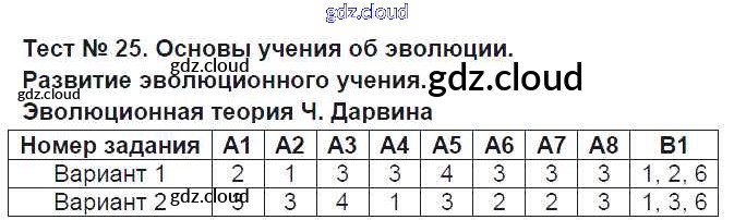 Ответ на задание Тест №25. Основы учения об эволюции. Эволюционная теория Ч. Дарвина Контрольно-измерительные материалы (КИМ) Биология за 9 (девятый) класс Богданов 2017