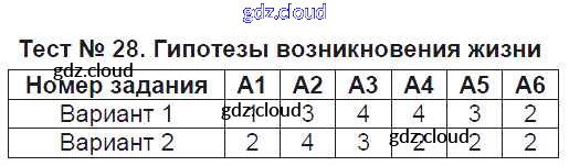 Ответ на задание Тест №28. Гипотезы возникновения жизни Контрольно-измерительные материалы (КИМ) Биология за 9 (девятый) класс Богданов 2017