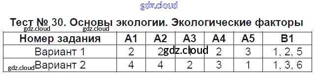 Ответ на задание Тест №30. Основы экологии. Экологические факторы Контрольно-измерительные материалы (КИМ) Биология за 9 (девятый) класс Богданов 2017