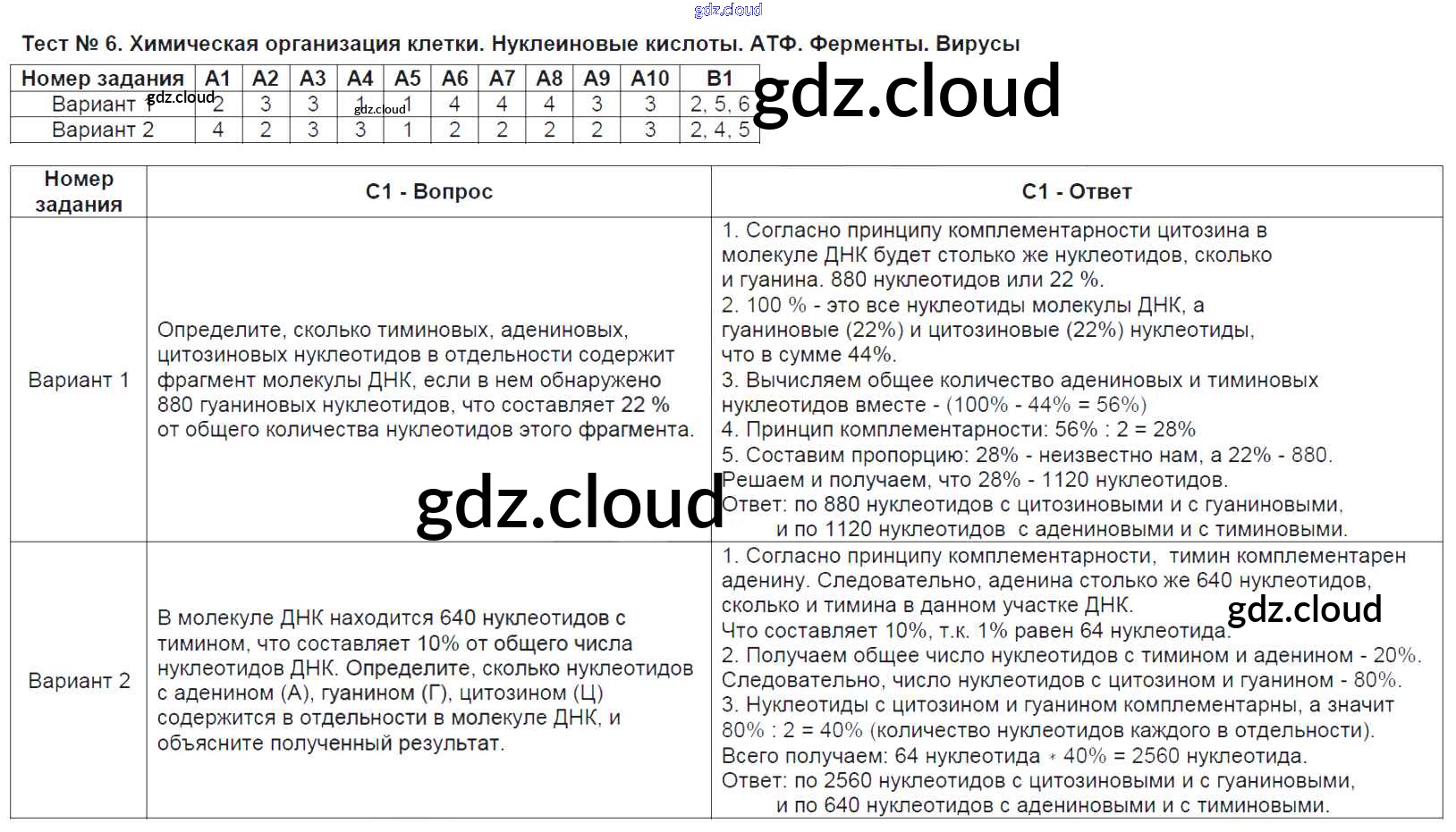 Ответ на задание Тест №6. Химическая организация клетки. Нуклеиновые кислоты. АТФ. Ферменты. Вирусы Контрольно-измерительные материалы (КИМ) Биология за 9 (девятый) класс Богданов 2017