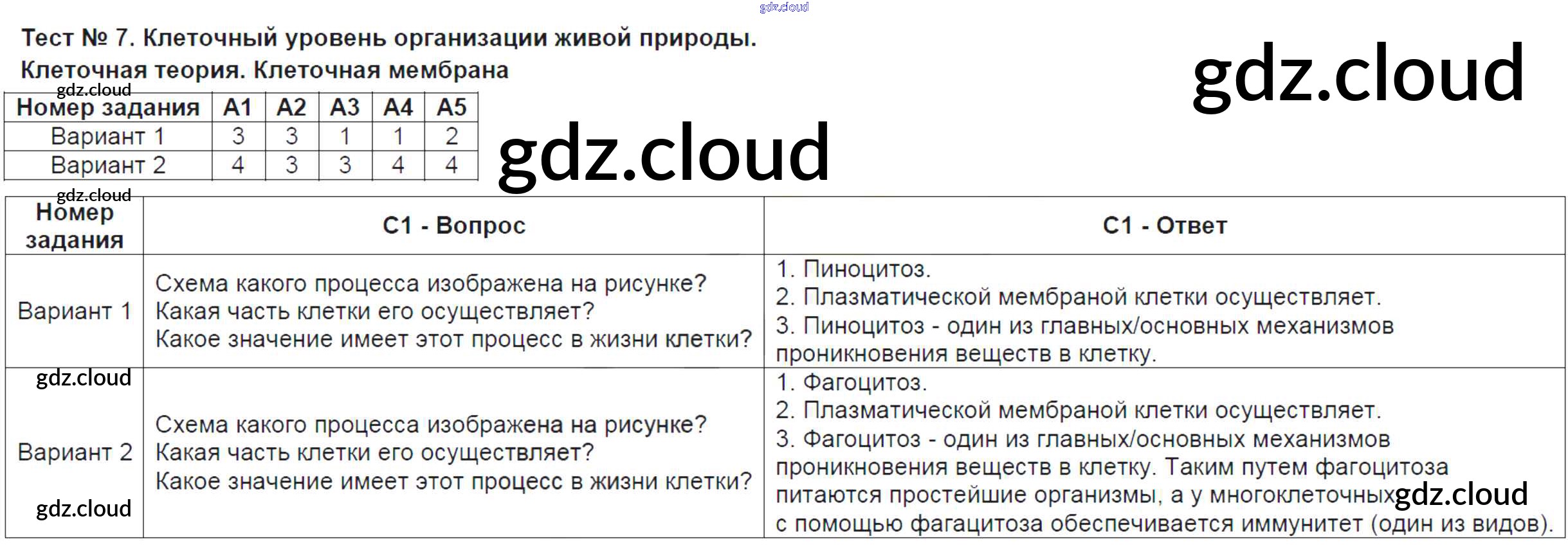 Ответ на задание Тест №7. Клеточный уровень организации живой природы Контрольно-измерительные материалы (КИМ) Биология за 9 (девятый) класс Богданов 2017