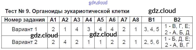 Ответ на задание Тест №9. Органоиды эукариотической клетки Контрольно-измерительные материалы (КИМ) Биология за 9 (девятый) класс Богданов 2017