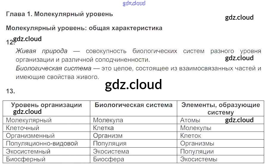 Ответы к Главе 1. Молекулярный уровень по Биологии 9 класс Рабочая тетрадь Пасечник Вертикаль Дрофа