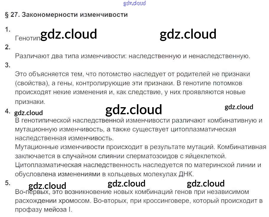 Ответы к Главе 3. Закономерности жизни на органическом уровне по Биологии 9 класс Рабочая тетрадь Пономарева Алгоритм успеха Вентана-граф