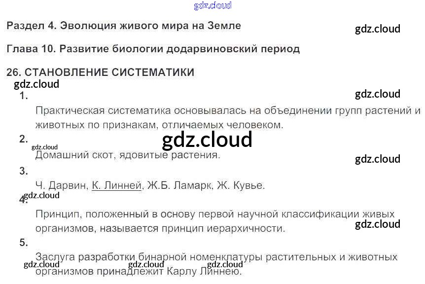 Ответы к Главе 10. Развитие биологии в додарвиноский период по Биологии 9 класс Рабочая тетрадь Цибулевский Вертикаль Дрофа