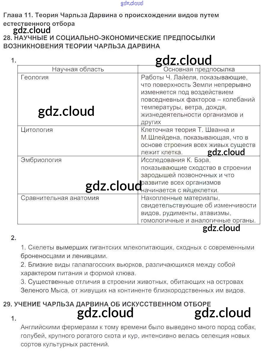 Ответы к Главе 11. Теория Чарльза Дарвина о происхождении видов путём естественного отбора по Биологии 9 класс Рабочая тетрадь Цибулевский Вертикаль Дрофа