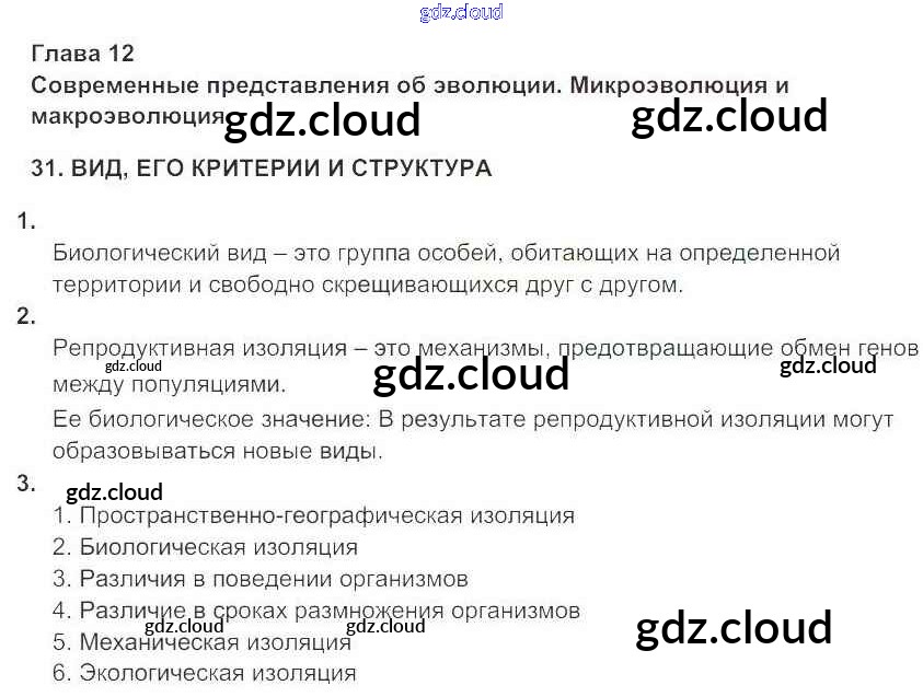 Ответы к Главе 12. Современные представления об эволюции. Микроэволюция и макроэволюция по Биологии 9 класс Рабочая тетрадь Цибулевский Вертикаль Дрофа